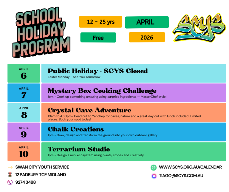 I first heard about Swan City Youth Service (SCYS) when NM TAFE recommended it to me. I decided to check it out, and I’m really glad I did.